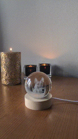 "Me regalaron esta esfera para tener un recuerdo de Nala. La calidad del cristal es increíble y el grabado láser tiene una profundidad que no se aprecia en las fotos, parece que Luna está ahí dentro. El embalaje llegó perfecto y muy protegido. Si estás dudando en comprarla para alguien que ha perdido a su mascota, no lo pienses, es un recuerdo para toda la vida."